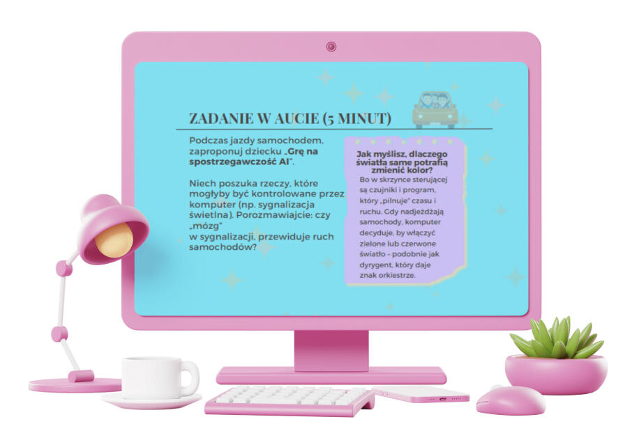 I właśnie dlatego powstała ta publikacja.Ebook „Co to jest sztuczna inteligencja?”, to prosty, zwięzły i merytoryczny przewodnik, który pomaga rodzicom i dzieciom oswajać temat AI – bez stresu, trudnych słów i definicji.